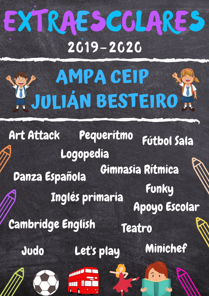 JULIÁN BESTEIRO A continuación, pueden consultar todas las actividades que realizamos en su colegio, y descargarse los documentos oportunos. FICHA INSCRIPCIÓN EXTRAESCOLARESDescarga Compártelo: Compartir en X (Se abre en una ventana nueva) X Comparte en Facebook (Se abre en una ventana nueva) Facebook Me gusta Cargando...
